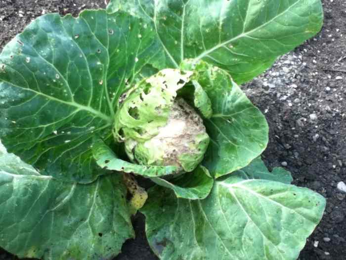 If your cabbage looks like this, you may have an infestation of cabbage worms.