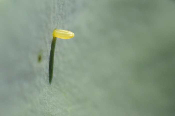 - Yellow or green eggs: They lay their very small and yellowish or leaf-green eggs on the undersides of leaves, and you probably won't notice them, even if you're looking really hard.